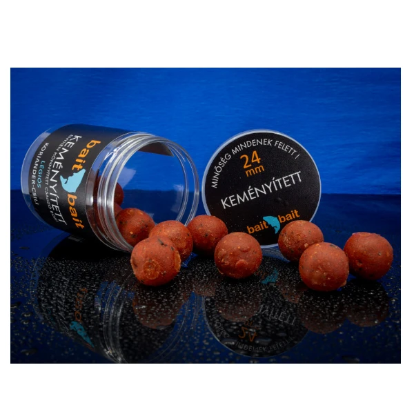 A Bait Bait keményített horogcsalik megalkotása során azt vettük figyelembe, hogy olyan helyzetekben amikor a nemkívánatos fehérhalak, vagy törpeharcsák aktívak, akkor is nyugodtak lehessünk, hogy a hajszálon egy olyan bojli van, ami megfelelően ellenál a kis halak támadásának. A keszeg féléknek teljes mértékben ellenáll, a törpeharcsák támadásait jelentősen ki tudjuk küszöbölni, és növelni a csali hajszálon töltött idejét.