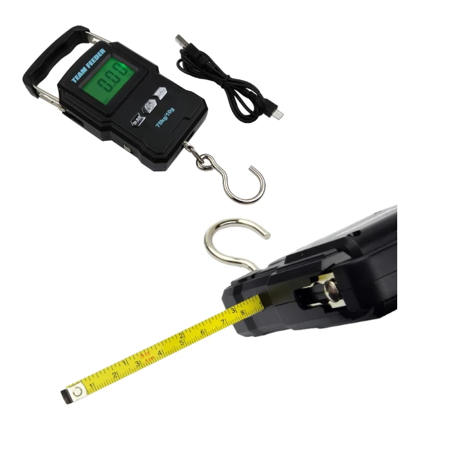 75 kg-os méréshatárral rendelkező, Li-Ion akkumlátoros halmérleg. 10 g pontosságú kompakt mérleg. Beépített hőmérővel, mérőszalaggal, rozsdamentes akasztó kampóval. Négyféle mértékegység kijelzés (kg, JIN, lb, oz)