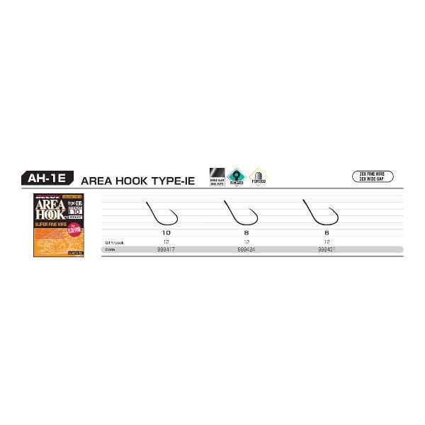 Kifejezetten kis pisztrángos kanalakhoz tervezett finom, egyes horgok, amelyek kis súlya nem befolyásolja a csali mozgását. Az Area Hook Type-IE sorozat szupervékony profilja nagy szemmel párosul.