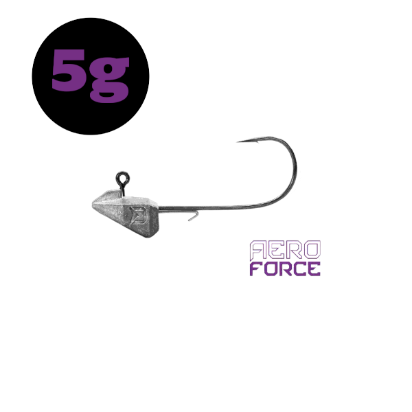 A Delphin AeroFORCE jigfej 5g egy speciális kialakítású jigfej, amelyet az alsó részen történő lágy csalis horgászathoz terveztek. A fej alatti rész lapos, és a súlypontja alacsonyabb, mint a hagyományos, kerek jigeké. Így a horog és a csali mindig felfelé áll, csökkentve az akadások kockázatát, és javítva a csali bemutatását a fenéken. Aerodinamikus alakja révén könnyen áthalad a víz alatti akadályokon, és simábban mozog a vízben.