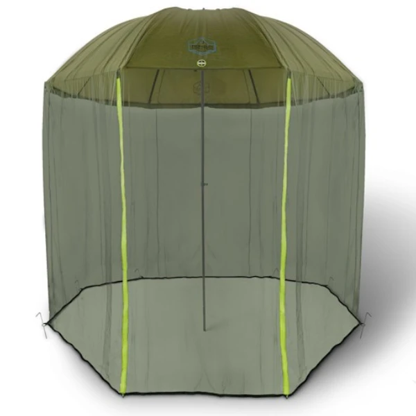 Rendkívül hatékony védelem a tolakodó rovarokkal ellepett partokon! Speciális kialakítású szúnyogháló, mely univerzális méreteinek köszönhetően a horgászernyők túlnyomó többségére rögzíthető. A rögzítőrendszer egy központi lyukból áll az esernyő hegyéhez és a csomag részét képező 8 rögzítőszögből.