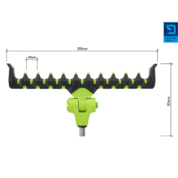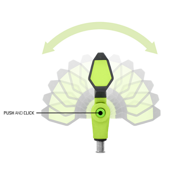 Elég széles ahhoz, hogy bedobás után a bot helyzete könnyen változtatható, a spicc optimális görbülete érdekében anélkül, hogy túl sok zsinórt kellene feltekernie. Ez a bottartó erős anyagokból készül, így nem sérül vagy karcolódik meg könnyen. Speciális formájának köszönhetően a bot még agresszív kapások esetén is a helyén marad. Felülete gumis anyaggal van bevonva, amely megvédi a botokat a sérülésektől. Univerzális menettel rendelkezik, amely kompatibilis az összes szabvány karral, tartóval és leszúróval. A tartó szárán lévő gumis rész megakadályozza annak elfordulását. A Flexi két bottal használható.