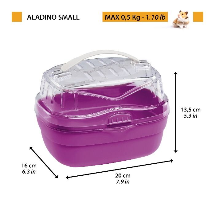 Különböző kisállatok, rágcsálók számára ideális. Legfeljebb 0,5 kg testsúlyig. Könnyen kezelhető, kialakítása által megfelelő szellőzést biztosít kis kedvencének. Átlátszó tetejének hála könnyen szemmel tartható kis kedvencünk. Praktikus fogantyú a tetején.