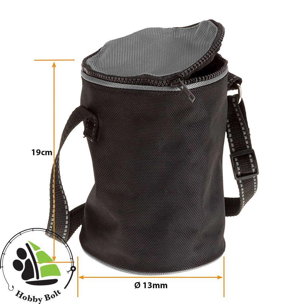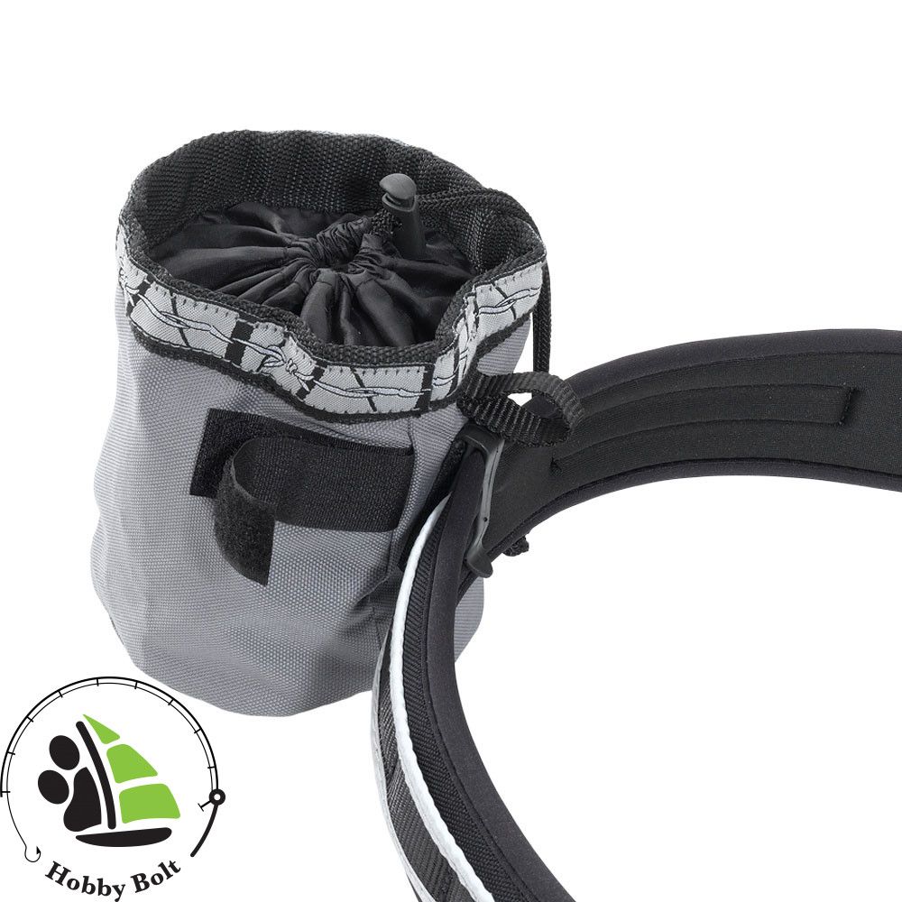 Övre vagy nadrágra aksztható könnyű és praktikus jutalomfalattartó táska. Anyaga szövet és nylon. Tökéletes választás minden utazáshoz, sétáltatáshoz vagy akár apportírozáshoz. Kábeles zárórendszere segítségével könnyen zárható így megelőzhető az étel kiszóródása.