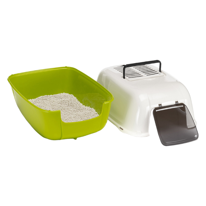 Könnyű tisztítás és karbantartás: Az oldalsó masszív csatok segítségével a tető egy mozdulattal levehető, így az alom cseréje és az aljtálca kimosása gyors és egyszerű.