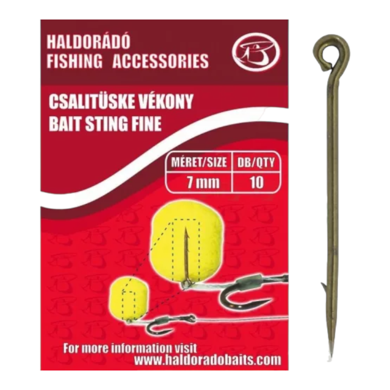 Forradalmian új csalizási mód! A csalitüske használatával egyszerűen és gyorsan csalizhat! Nem kell fúró, fűzőtű és stopper! A csalitüske puha csalik hajszálelőkés használatához készült. A sok korábbi csalizási kellék elhagyható, rendkívül egyszerűvé teszi a csalizást. Egyszerűen csak bele kell tűzni a csaliba és már horgászhatunk is! A normálméretű tüske sem repeszti szét a pelleteket, ám a „fine” még az extra finom csalikban sem tesz kárt. Ennek vastagsága mindössze 0,35 mm, így a sérülékeny dolgokat is bátran rászúrhatjuk. Ez a vastagságú tüske alkalmas akár élő csalik felkínálására is. Csontkukac, pinki, de még szúnyoglárva is megáll a vékonyka tüskén. Előnyös tulajdonsága lehet az új tüskének, hogy kevésbé súlyozza le a lebegő csalikat, mint elődje, úgyhogy a hideg vízi finomhorgászathoz ideális. Elérhető 7 és 10 mm-es változatokban. A rövidebb a pici csalikhoz remek választás, míg a hosszabbra extra könnyű fűzeteket lehet feltűzni.