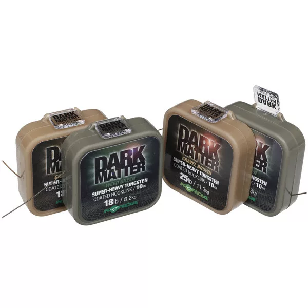 A Korda Dark Matter Tungsten Coated Braid – bevonatos nehezített előkezsinór , mely a legmodernebb technológiáknak köszönhetően a Korda képes volt hozzáadni a volfrám anyagot az előkezsinór sötét bevonatába. Ez biztosítja, hogy az előke gyorsan lesüllyedjen a tó fenekére. A Dark Matter tungsten bevonatú előkezsinór félig merev és tökéletes a modern pontyhorgászathoz. A tesztelési időszak alatt a legextrémebb körülmények között nagy mennyiségű kapitális halat segítettek partra. Kapható 18lb és 25lb méretben és két színben Gravel Brown és Weed Green színben. A 10m-es tekercsek új négyzet alakúak, amelyek segítik a takarékos dobozokban való tárolást.