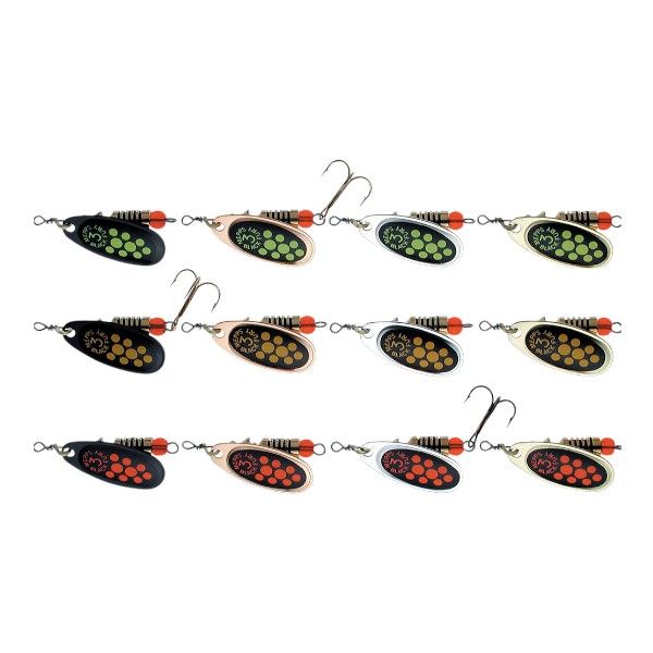 Pillangó hatás: Amennyiben az Aglia villantó vezetési technikáját már elsajátította, ismerje meg a Comet villantót, melynek mozgása érzékenyebb és precízebb. Tökéletesen kiegészíti az Aglia-t, mert a zavaros vadvizekben, valamint a sziklák és akadályok által megtört áramlatokban is használható. A pengén található piros és kék pöttyök olyan fényes felületet eredményeznek, melyek lehetővé teszik, hogy a villantó tökéletesen visszaadja a csalihal víz alatti csillogását. A Black Fury villantó használata tökéletes megoldás a hegyi patakokban és folyókban, ahol különösképpen ajánlott, a 2-es, 3-as és 4-es méret használata, valamint a fekete-sárga színkombináció. A csendesebb vizekben és a tavakban ezeknek a típusoknak erős és kifejezetten szabálytalan a mozgásuk, mellyel csábítóan hatnak a ragadozók számára, hiszen a riadt csalihal mozgására emlékeztetnek.