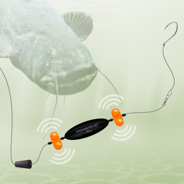 A testrészben acélgolyó található, a tompa csörgés messziről felhívja a harcsa figyelmét.