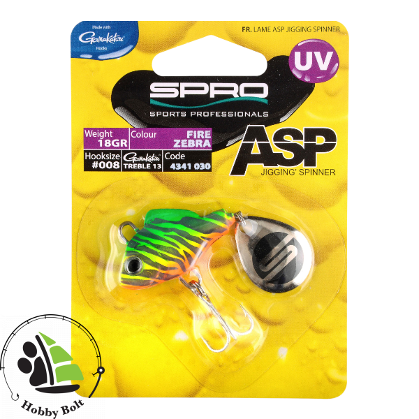 A megújult Spro ASP Spinner UV környezetbarát cinkből készülnek és UV aktív festéssel látták el őket. A megerősített a körforgó csatlakozás garantálja a tartósságot és a maximális forgási sebességet. Minden Spro ASP-t japán Gamakatsu horoggal látnak el, ami garantálja a megbízható akadást és a zsákmány megtartását a hosszabb fárasztások alatt is. A különböző méretek között mindenki megtalálhatja a számára ideális típust. Több méretben elérhető.