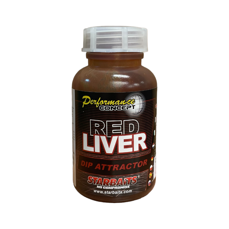 Red Liver bojli recept alapján készül. Dip növeli a csali illatának és ízének nyomát. Használható bojlira, pelletre, magvakra. Nem oldja fel a PVA-t!