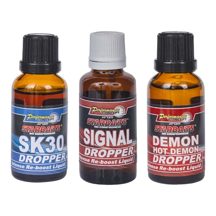 A Dropper tömény folyadék, tele ízzel és aromával. Természetes kivonatok desztillálásával jönnek létre. A víznél kisebb sűrűsége miatt nagyon gyorsan terjed a csalogató ízek és illatok. A csepegtetőt használhatjuk az összes letező csalira mint például bojli, pop up, pop tops, magvak, plasztik csalik és egyébb. Nagyon hatékony használata Zig Rig módszernél, ahol a vízoszlopban gyorsan terjed a Dropper ellenálhatatlan aromája. Erős koncentrációjának köszönhetően csak néhány csepp elegendő ahhoz, hogy saját egyedi csalit készítsen.