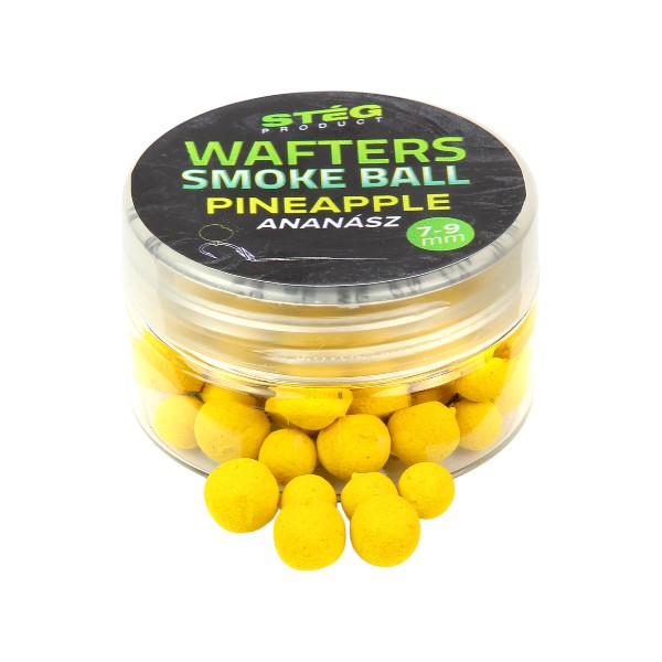 A Stég Wafters Smoke Ball ananászos változata a modern pontyhorgászat alapvető kelléke. A csali intenzív sárga (fluo) színe kiemelkedik a mederfenéken, így zavarosabb vizekben is könnyen megtalálják a halak. A vízbe érést követően azonnal elkezdi kibocsátani magából a látványos illat- és színfelhőt, amely a mederfenéken terülve vezeti a halat közvetlenül a horoghoz.