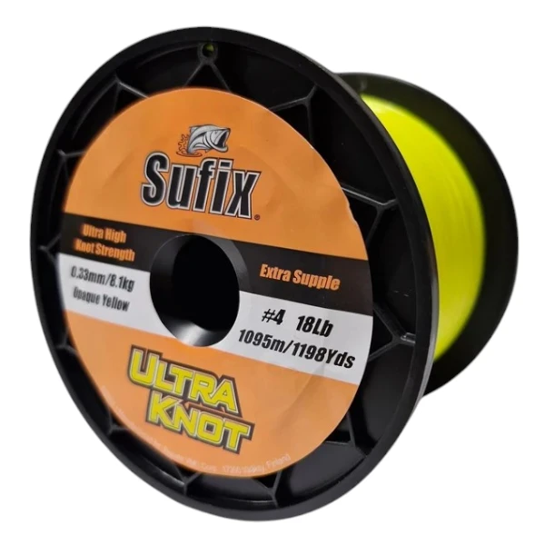 A Sufix Ultra Knot egy kivételes jellemzőkkel rendelkező kopolimer monofil zsinór, mely könnyen csomózható és minimális meghúzás mellett is szorosan tart. A speciális kopolimer technológia miatt rendkívüli a csomótűrő képessége, lágysága miatt pedig nagyon könnyen fut le a dobról. A fluo citromsárga színének köszönhetően éjszaka is jól látható.